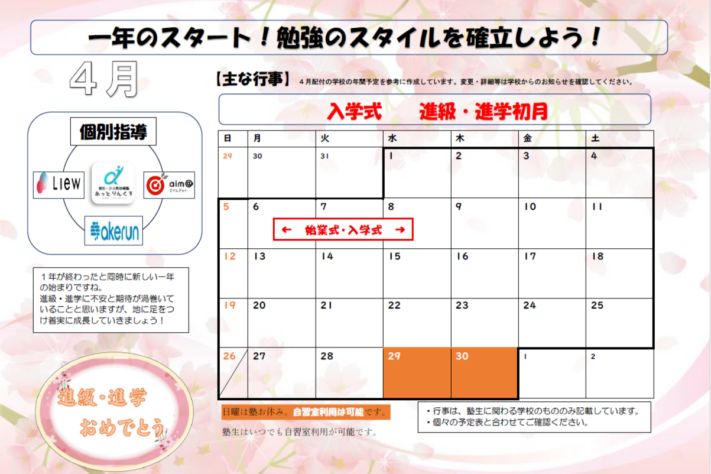 土日祝日、学校の早帰り、急な休校などいつでも塾で自習ができます!小学生は希望制です。